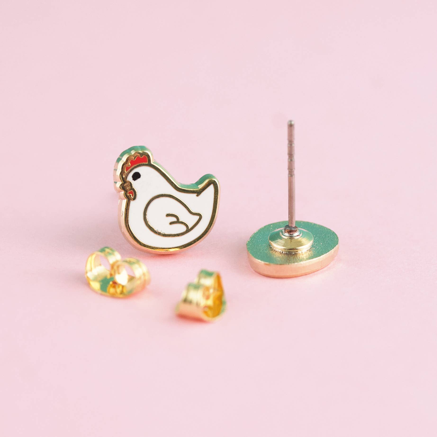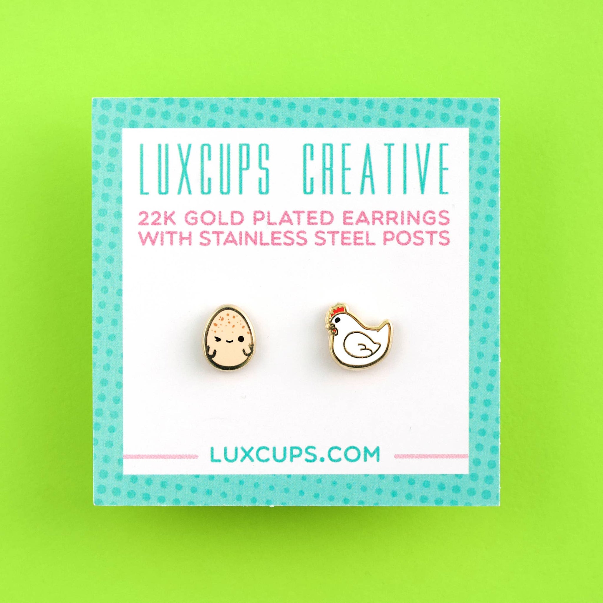 All 0.5'' enamel earrings are plated in 22k gold with stainless steel posts. Individually packaged in protective hanging cello sleeves.