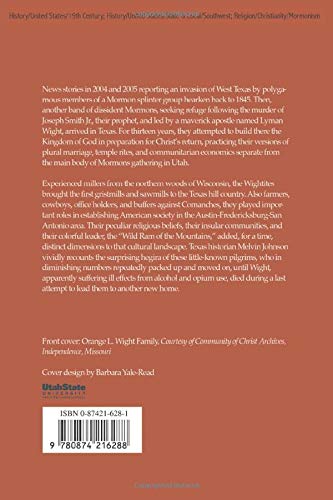 Lyman Wight's Mormon Villages in Antebellum Texas, 1845-1858. In the wake of Joseph Smith Jr.’s murder in 1844, his following splintered, and some allied themselves with a maverick Mormon apostle, Lyman Wight. Sometimes called the "Wild Ram of Texas," Wight took his splinter group to frontier Texas, a destination to which Smith, before his murder, had considered moving his followers, who were increasingly unwelcome in the Midwest. He had instructed Wight to take a small band of church members from Wisconsin to establish a Texas colony that would prepare the ground for a mass migration of the membership. Having received these orders directly from Smith, Wight did not believe the former’s death changed their significance. If anything, he felt all the more responsible for fulfilling what he believed was a prophet’s intention.